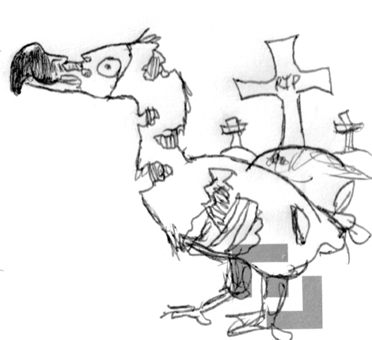 Toujours est-il que les plus futés des Dodos* échappèrent au carnage et fuirent au hasard des courants. On ignore à ce jour comment ils y sont arrivés, mais il y a fort à parier que Leonardodo do Vinci y a été mêlé.